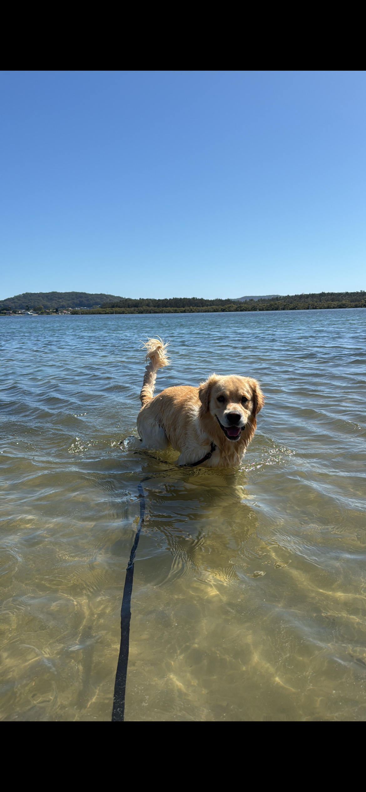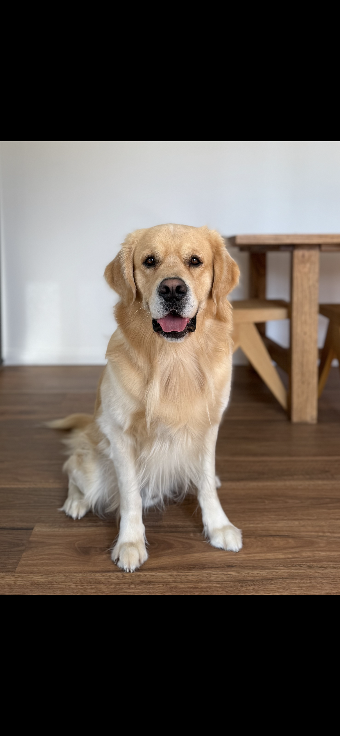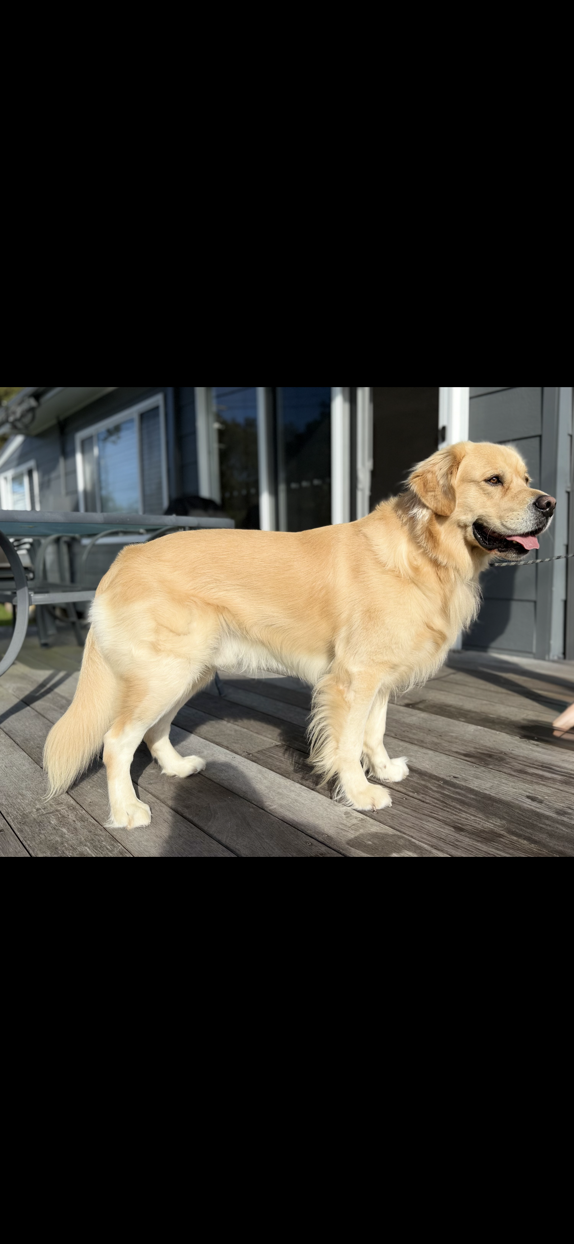 Banks is your typical Goldie temperament, he is a confident dog who is sure of himself, eager to please, easy to train, extremely placid, laid back, low ball/prey drive, very affectionate and loving.